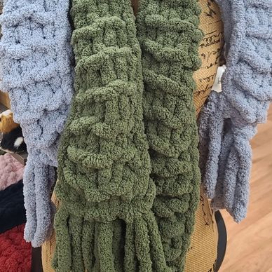 Cara Gates will teach everyone how to use their hands (no needles) to knit a beautiful chunky scarf.